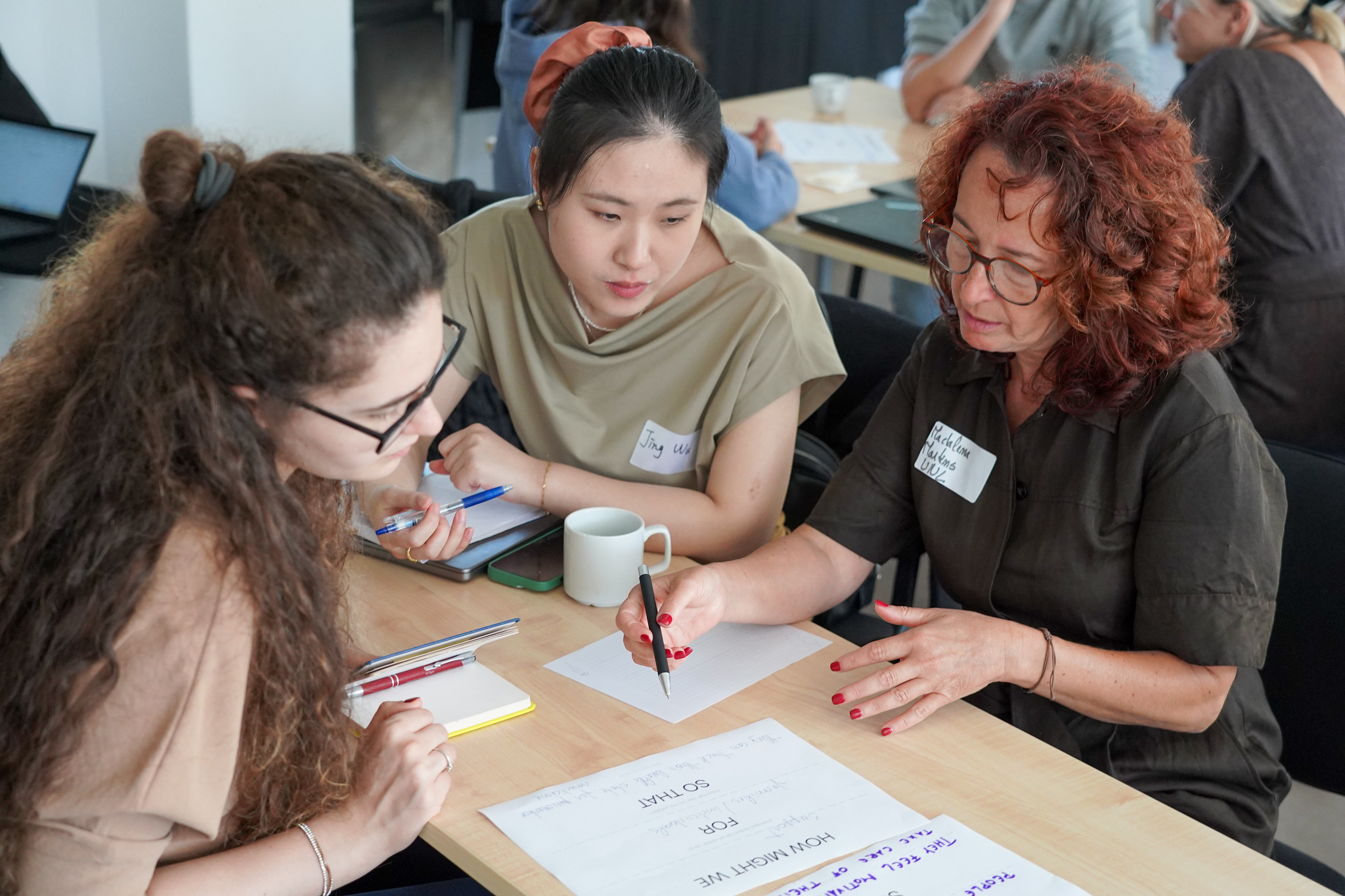 The second day shifted focus from concepts to prototypes. A morning lecture introduced practical methods for prototyping and testing. Teams then refined their ideas, conducting additional desk research and creating early prototypes ranging from mock-ups to surveys and promotional materials.