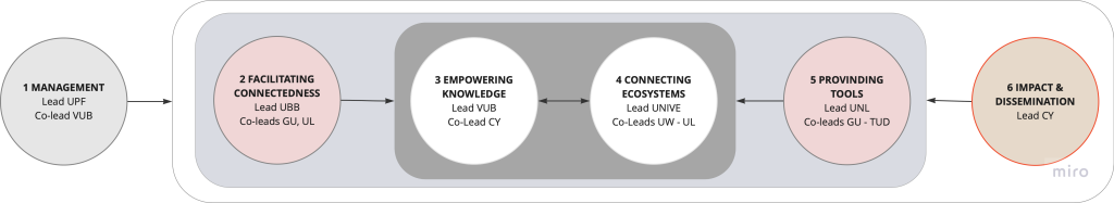 EUTOPIA MORE‘sstrategic mission is delivered through six coordinated Work Packages, each driving institutional transformation across our European university network.